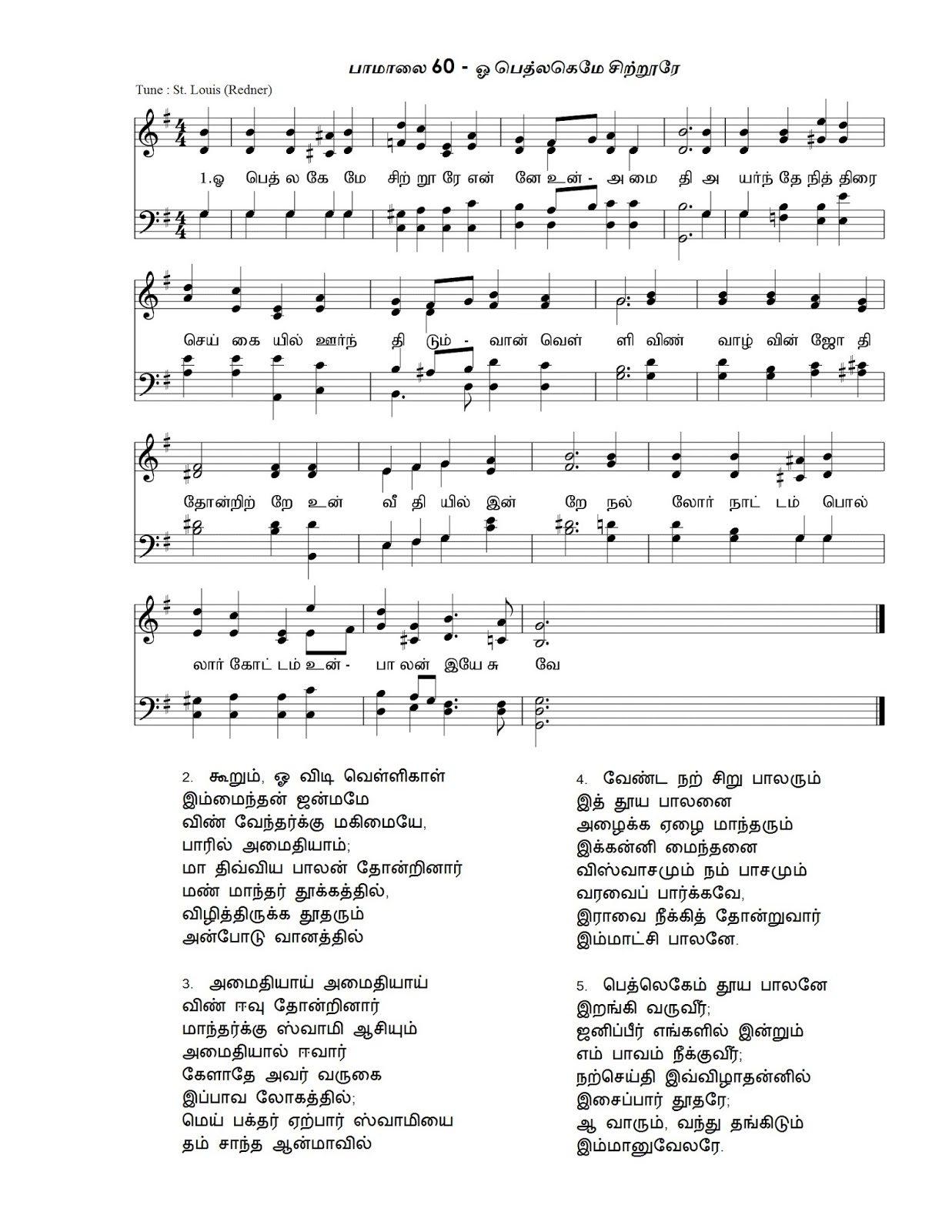 ‘இம்மானுவேலே’, ‘ஈசாயின் வேர்த்துளிரே’, ‘அருணோதயமே’, ‘தாவீதின் திறவுகோலே’, ‘வல்லமை